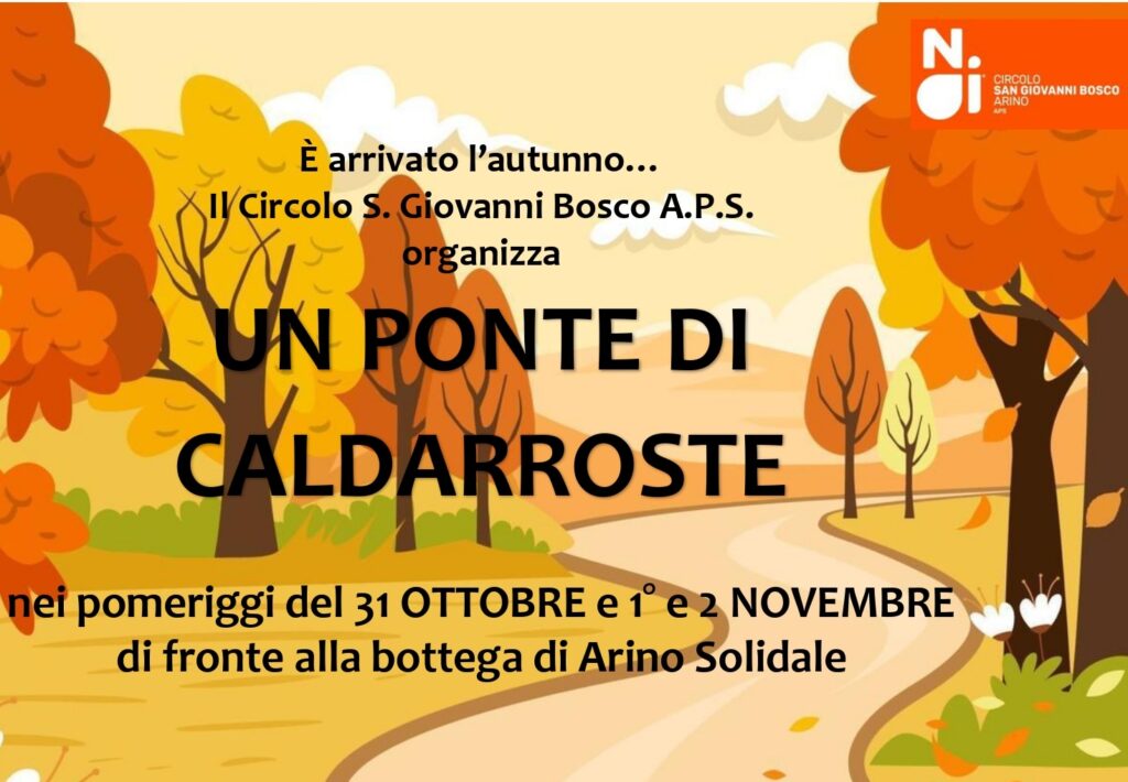 L’autunno è arrivato con i suoi meragvigliosi colori e anche con i frutti di stagione, come le castagne, che possono essere motivo di incontro e solidarietà. Per questa ragione il circolo NOI S. Giovanni Bosco raccoglie tale opportunità ed organizza l’attesa iniziativa nei pomeriggi del 31 ottobre, 1 e 2 novembre davanti alla bottega “Arino Solidale”.