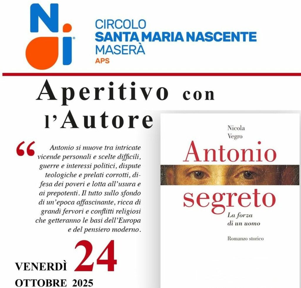 Il circolo Noi di Maserà propone un “aperitivo” davvero speciale, ovvero un incontro con Nicola Vegro, autore del libro “Antonio segreto”.