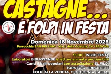 Grande affluenza presso il circolo Noi di S. Bellino, in occasione della festa di domenica 16 novembre con le tipiche specialità autunnali. L’evento, realizzato in collaborazione con il circolo di SS. Trinità e l’unità Pastorale Arcella, ha visto il coinvolgimento di moltissime famiglie che hanno partecipato con piacere alle iniziative correlate ai momenti di convivialità, … Leggi tutto Castagne e folpi in festa a S. Bellino