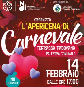 Il circolo NOI di Terrassa Padovana, con il patrocinio del Comune, propone una festa di Carnevale per sabato 14 febbraio. L’appuntamento è alle ore 17:00