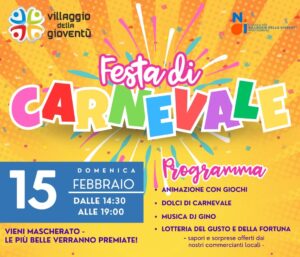 Il circolo NOI di Montagnana organizza una speciale festa di Carnevale presso il Villaggio della Gioventù a partire dalle ore 14:30 di domenica 15 febbraio.
