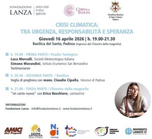 La Diocesi di Padova, in collaborazione con Fondazione Lanza, la Pontificia Basilica di Sant’Antonio, Noi Padova ed altri enti, propone una riflessione sulla crisi climatica.