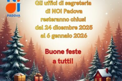 NOI Padova segnala che la segreteria rimarrà chiusa dal 24 dicembre 2025 al 6 gennaio 2026 compreso. Gli uffici torneranno disponibili a partire da mercoledì 7 gennaio 2026. Davide Polito, Roberta Malipiero e Sabrina Bandiera porgono un caro augurio di buone festività a tutti i soci!