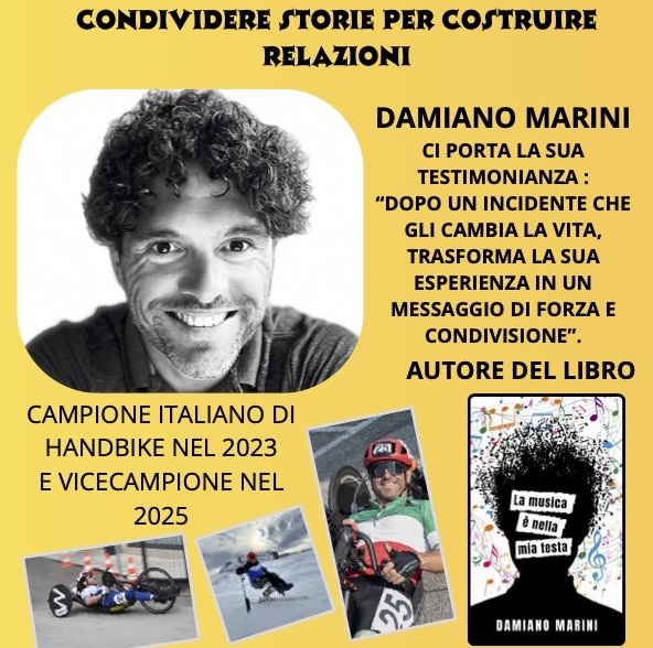 Il Circolo Noi Liettoli, con il patrocinio del Comune di Campolongo Maggiore, propone una serata speciale con Damiano Marini, un atleta che racconterà la sua storia personale, segnata da un tragico evento dal quale ha saputo riemergere con straordinaria forza e determinazione.