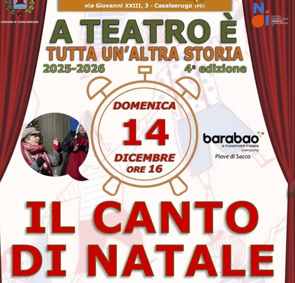 Avrà luogo presso il centro AVE, domenica 14 dicembre alle ore 16:00 “Il canto di Natale”, messo in scena dalla compagnia “Barabao” di Piove di Sacco (PD).