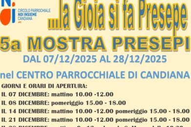 Il circolo Noi di Candiana, in collaborazione con la parrocchia ed il patrocinio del comune, organizza la quinta edizione della mostra presepi con il titolo “… la gioia si fa presepe”. Da domenica 7 fino a 28 dicembre sarĂ possibile visitare (secondo gli orari stabiliti) la mostra dei presepi a Candiana, giunta alla sua quinta … Leggi tutto La gioia si fa presepe a Candiana