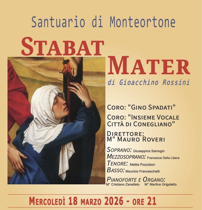 Il circolo Noi di Monteortone, in collaborazione con il Santuario della Madonna della Salute ed altri enti, propone un evento musicale di grande valore culturale: lo Stabat Mater di Gioacchino Rossini.